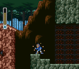 ステージ中盤に左のような場所があります。ここを下につたって降りて行きます。 |
